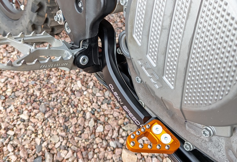 Hard Enduro type rear brake pedal for the KTM, Husqvarna and Gas Gas off-road bikes 2017-Present. Our rear brake pedal offering follows years of testing and development at every level of riding from C-class to Pro, and more crashes get offs and drops than anyone will ever admit. The result is carefully selected geometry with thoughtful attention to every detail. From bend angles and pedal cross sections to stainless steel thread inserts, sealed roller bearings, and the included return spring upgrade; this is the ultimate rear brake pedal for hard riding. Please select your machine type from the drop down list. We currently have fitment for all 125-300cc 2-Stroke models as well as all 450-501 4-Stroke models in the year ranges listed.