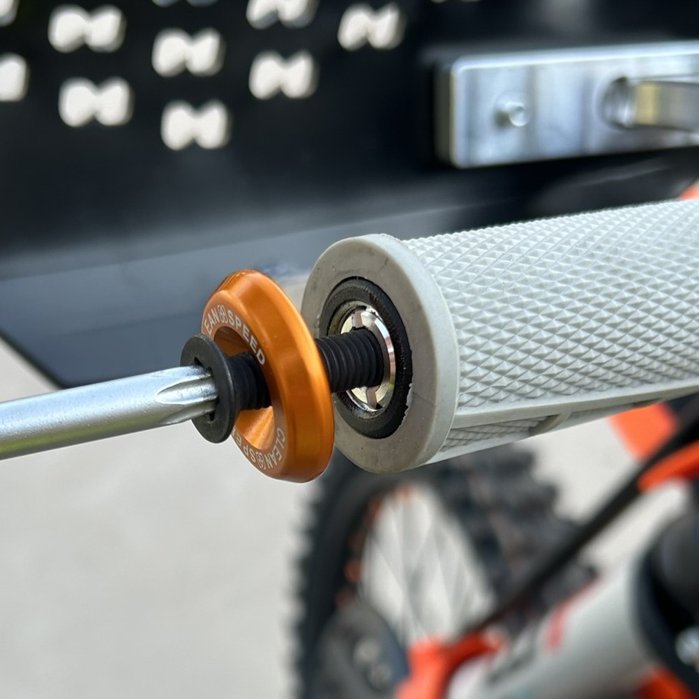 Our 3 Piece Thread-X Bar Ends provide the ultimate flexibility and durability for riders who alternate between flag and wrap around handguards. Riders can install the supplied endcaps for flag handguards, or by removing the endcaps mount their favorite wrap around handguards in seconds. This is possible because our supplied mounting screws are compatible with nearly all wrap around handguards on the market. Additionally, these 3 piece bar ends feature a “floating” endcap, with enough compliance between the endcap and center screw such that they can self align with uneven edges on handlebar ends that may not be suitable for our 1 piece bar ends (IE: Bars that have need previously damaged or known not to be “square” or even on the ends).